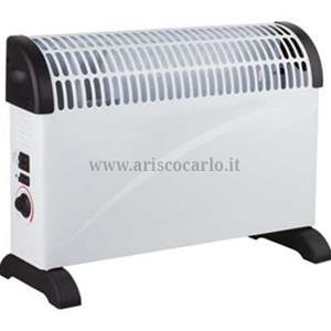 Tensione 220V/50Hz. 3 livelli di riscaldamento, termostato ambiente regolabile, protezione contro il