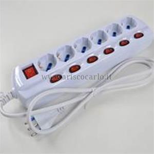MULTIPRESA LINEARE BIANCA 6 USC. SCH.+BIV. DA MT. 1.5 C/INTERR. + INT. SINGOLO