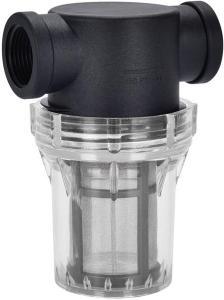 Realizzato in PPCV/NYL con contenitore trasperente, completo di cartuccia inox 80 micron. Portata max 60 lt/min.