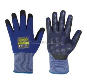 DESCRIZIONE: Guanto filo continuo nylon, con spalmatura sul palmo in schiuma di nitrile con puntinatura in pvc per migliorare la presa su oggetti bagnati. Dorso areato. Buona resistenza all’abrasione. Polso elasticizzato.